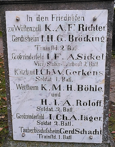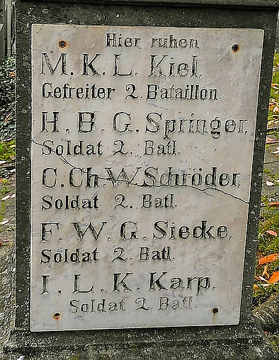 Anmerkung: Die unter Bemerkungen aufgeführten Orte geben die Friedhöfe an, auf denen die Soldaten laut Namenstafeln bestattet wurden.