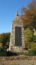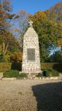 schuf Gärtner Desler, Grundhof. Das Denkmal ist ein gedrungener Obelisk, mit Kugel und Kreuz gekrönt.
