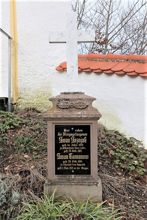 Ein Kriegsgrab am Friedhof, sowie Daten von privaten Gedenksteinen.
