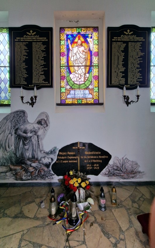 Das Gefallenendenkmal steht auf dem Friedhof St. Valentinstag. Die Gedenktafeln sind in einem kleinen Mahnmal ausgestellt.
