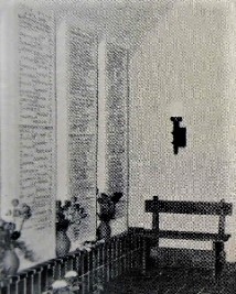 Das Bild des Gedenkraums in der Kirche ist dem Gedenkheft entnommen. Leider sind darauf die Inschriften nicht erkennbar.