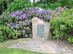 Ein großer Findling an der Hauptstraße in einem kleinen Park. Bronzetafel mit den Namen der Toten.