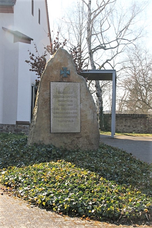 Stein mit Tafel bei der Friedhofskapelle (Weltkriege, ohne Namen).