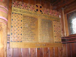 In der Gustav-Adolf-Stabkirche von Hahnenklee von 1907/1908 je eine geschnitzte Holztafel mit den 21 bzw. 41 Namen der Kriegstoten beider Weltkriege.