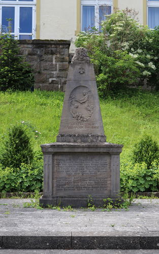 Standort ist am Viehweg in der Ortsmitte von Haselbach. Obelisk, dessen oberen Abschluss ein Helm auf einem Eichenkranz bildet und der auf einem Inschriftensockel steht. Auf der Vorderseite des Obelisken befinden sich ein Tatzenkreuz und das ovale Relief mit der Darstellung eines sterbenden Soldaten und eines Engels mit Palmenzweig sowie eine Gedenkinschrift.