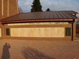 Ehrenmal an der Friedhofskapelle in Haselünne. Die Namenstafeln des Ersten Weltkrieges sind nach den umliegenden Ortschaften aufgeführt.