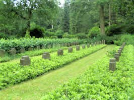 Drei Grabreihen innerhalb des Haster Friedhofes an der Friedhofskapelle. Auf den Grabkreuzen sind nur Geburts- und Sterbedaten angeben,