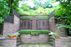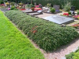 Die Gräber und Grabkreuze sind nahezu unter Pflanzen verborgen.