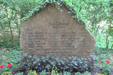 2. Weltkrieg: zwei kleine und ein großer Naturstein mit Namen.