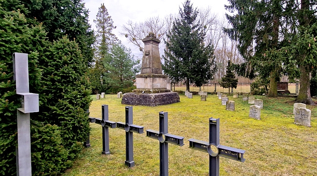 Die Kriegsgräber für den 1. Weltkrieg sind mit kleinen Grabsteinen markiert, die Gefallenen des 2. Weltkriegs bekamen Metallkreuze.