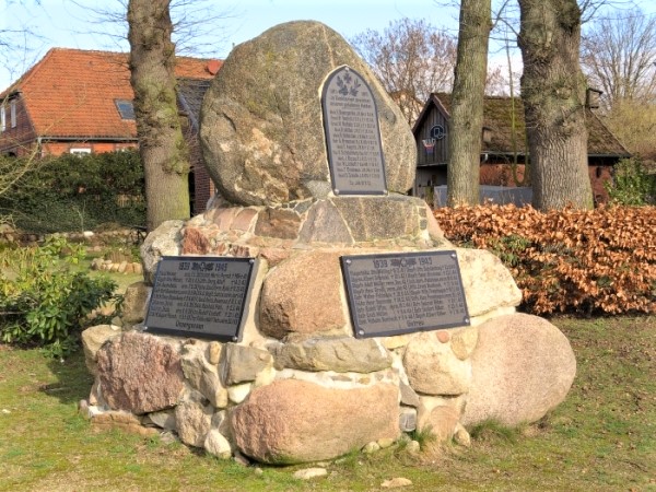 Das Denkmal steht auf einem kleinen, gepflegten Areal an der Straße „Im Dorfe“ (Ecke „Klein Süstedter Str.“).