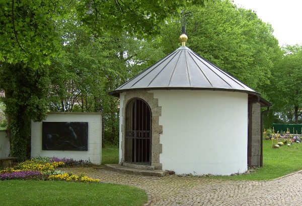 In der Kapelle auf dem Friedhof liegt auf einem Altar ein Gedenkbuch der beiden Weltkriege aus.