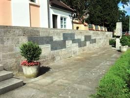 Denkmal mit fünf Tafeln an Mauer südlich vor der Kirche St. Alban.