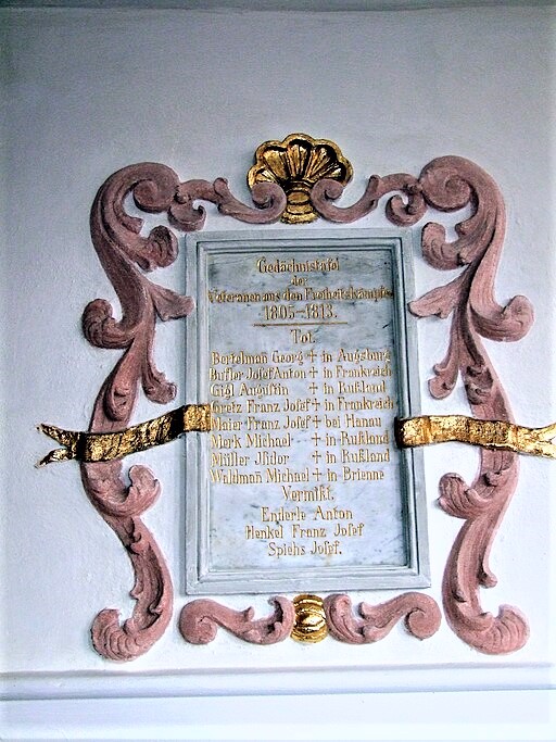 Zwei Gedenktafeln unter der Empore der Pfarrkirche Mariä Himmelfahrt.