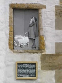 Heinrich Brummack schuf mit seinem Sohn Jakob im Jahr 2008 das Gedenkrelief, das an den Tod der Kinder erinnern soll, die 1944 in dem Schutzstollen am Schölerberg ums Leben gekommen sind. Das Relief befindet sich an der westlichen Fassade der ehemaligen Kirche. Die nichtangegeben Nachnamen und Geburtsdaten wurden - nach Rückrechnung - dem eigenen Datenbestand entnommen.