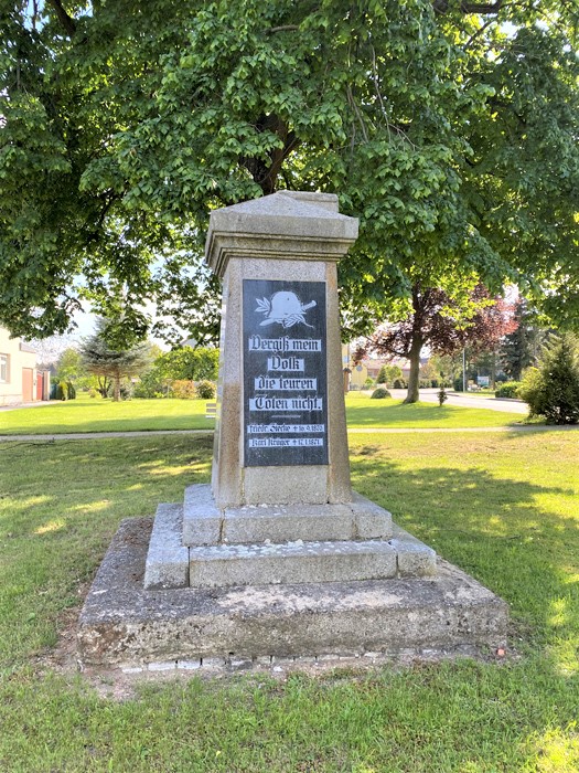 Denkmal in einer Grünfläche im Ort für die Feldzüge 1870/71 und den Ersten Weltkrieg.