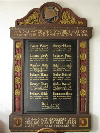 Pfarrgemeinde Kammerstein 1914 - 1918: