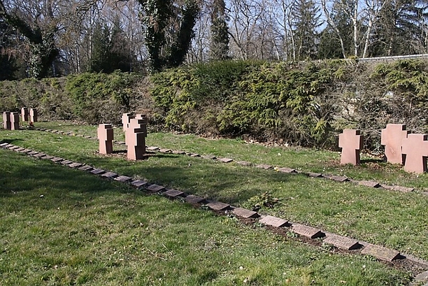 Im Hauptfriedhof: Kriegsgräber für die Fliegeropfer. 23 von ihnen (1944) blieben unbekannt.
