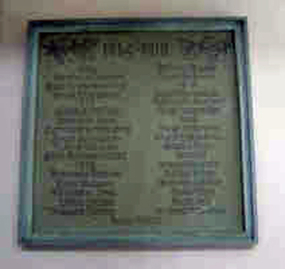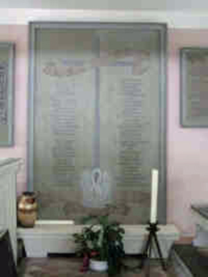Holzplatten mit aufgemalten Namen für beide Weltkriege.