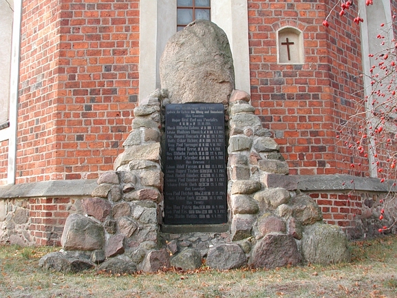 An der Kirche steht ein Denkmal für die Gefallenen des 1 Weltkriegs aus Laasow, Laasdorf, Briesen und Tornitz.