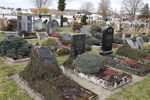 Zusätzlich Kriegsgräber und private Gedenksteine.