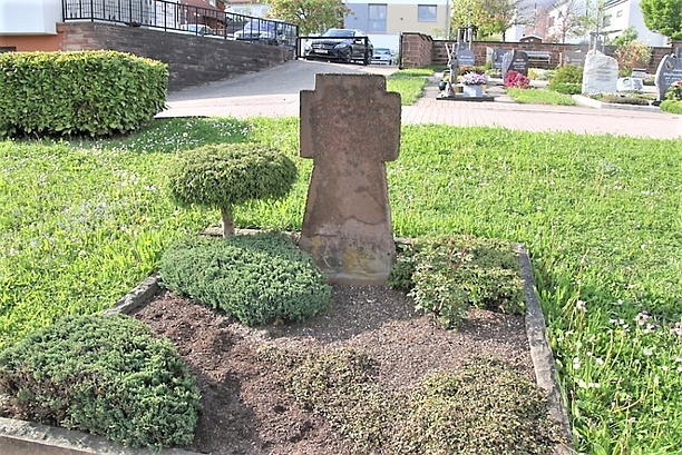 Im Friedhof ein Kriegsgrab und Daten von privaten Gedenksteinen.
