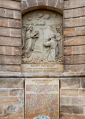 Kriegerdenkmal an der katholischen Pfarrkirche St. Laurentius.