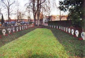 Kriegsgräberstätte auf dem städtischen Friedhof. Einzelgedenken auf Privatgräbern.
