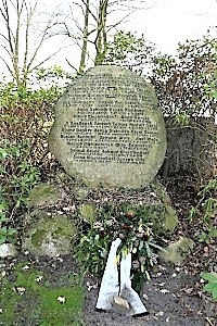 Kleine umzäunte Anlage an der Linteler Straße Ecke Lindhorn. Darin auf einem Sockel ein Granitfindling mit den eingravierten Namen der Gefallenen.