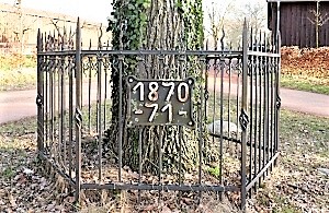 500 m südwestlich an der Linteler Straße eine umzäunte Friedenseiche mit den Jahreszahlen 1870-71