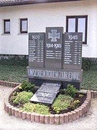 Auf dem Friedhof befindet sich ein Denkmal für die Gefallenen der beiden Weltkriege. Es besteht aus vier stehenden und einem liegenden Teil aus schwarzem Granitstein in einem Blumenbeet. In der Mitte ist ein Ehrenkreuz abgebildet, darunter und an den Seiten der Steine die Jahreszahlen der Kriege und die Namen der Gefallenen und Vermissten.