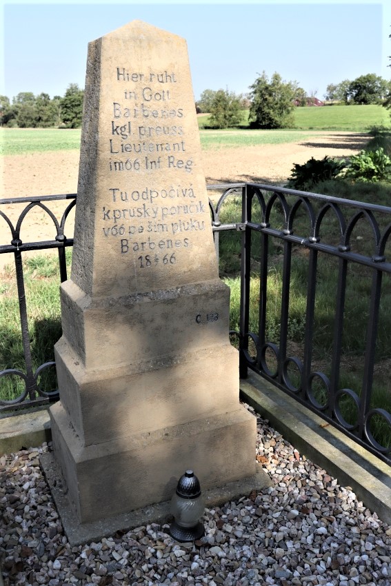 Zde v Pánu odpočívají král. pruští nadporučíci Wintzingerode 66. Kamlah 67. pěšího pluku a 4 pruští vojínové † 3. července 1866
