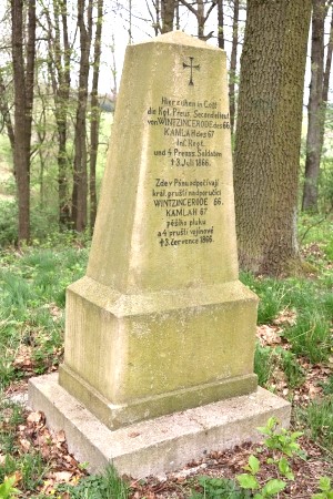 Hier ruhen in Gott die kgl. preus. Secondelieut. von Wintzingerode des 66. Kamlah des 67. Inf. Regt. und 4 preuss. Soldaten † 3. Juli 1866