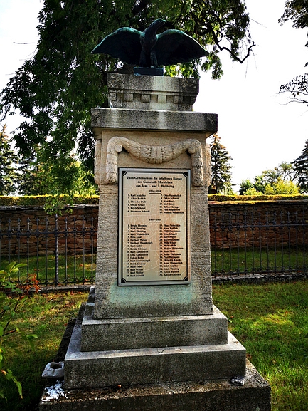 Das Denkmal steht am hinteren Eingang des Friedhofes hinter der Kirche. Den oberen Abschluss bildet ein Adler mit ausgebreiteten Schwingen.