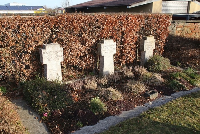 Im Friedhof Kriegsgrab mit drei Steinkreuzen, sowie Daten von privaten Gedenksteinen.