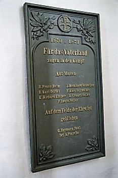 Zwei Tafeln in der 2004 nach Generalsanierung neu geweihten ev.-luth. Dorfkirche St. Nicolai.