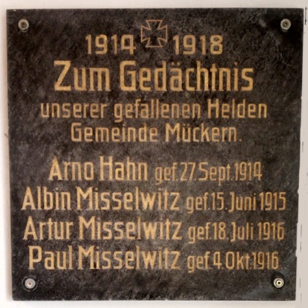 Reservist | MISSELWITZ | Artur | Mückern | 18.07.1916 | IR 72/10. | |