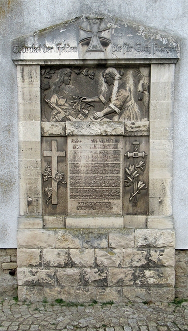 Denkmal für den 1. Weltkrieg an der Außenmauer der Kirche.
