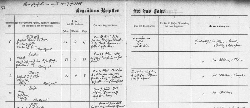 Kirchenbücher von St. Marien: Kriegsgefallene aus den Jahren 1939-1943 und Beerdigte 1943-1945.