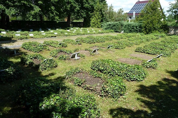 Kriegsgräberstätte für Gefallene der Jahre 1944 und 1945. Zusätzlich private Gedenken für beide Weltkriege.