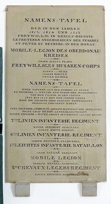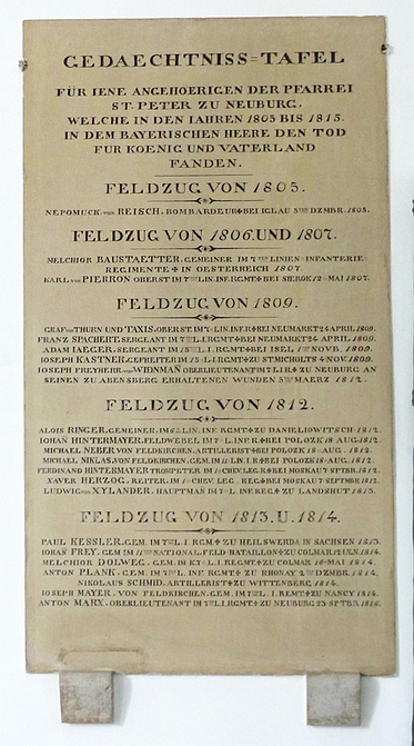 Gedenktafeln für die Napoleonischen Kriege in der Kirche.