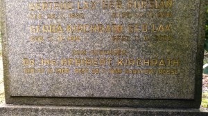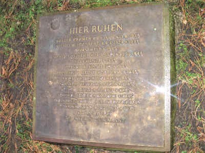 Im Eingang der Friedhofsanlage befinden sich links und rechts je ein Gedenkstein. Rechts abgehend vom Mausoleum ein Stein, ausgebildet wie ein Opfertisch, davor drei Kupferplatten.
