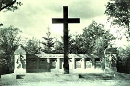 Das Denkmal für die Gefallenen des 1. Weltkriegs am Rande des Ehrenfriedhofs wurde 1944 durch Bombentreffer zerstört.