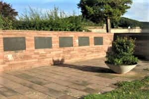 Mehrere Gedenktafeln auf dem Nieder-Ramstädter Friedhof.