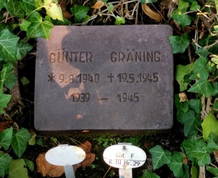 Schüler in Nikolassee; Vorname: Christoph; Sohn von Bruno Grauel (1884-1937) und Berta Grauel, geb. Engel (1895-1961); Schock nach Verbrennungen und Verletzungen durch Panzerfaust |