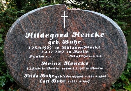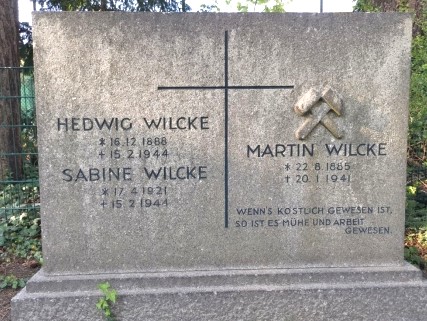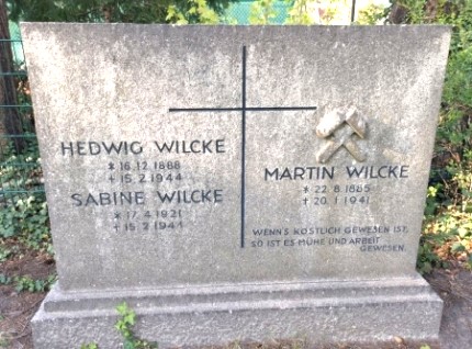 Geschäftsinhaberin in Nikolassee; Witwe von Martin Wilcke (1885-1941); Gefallen beim Fliegerangriff; Grab 99 |