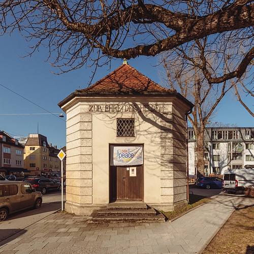 Im Inneren der Kriegergedächniskapelle vor der Christkönigkirche in der Notburgastraße