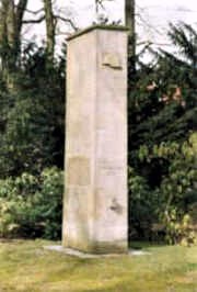 In der großzügigen Anlage an der Ecke Am Brink/Lethestraße stehen unter Bäumen eine Sandsteinstele (1870/71)
