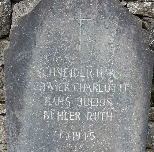 Auf dem nahegelegenen Friedhof ein Kriegsgrab für vier Menschen, die 1945 ums Leben kamen.
