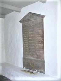 Im Vorraum der Kirche von Oxbüll eine Tafel zum Gedenken der Kriegstoten des Ersten Weltkrieges.